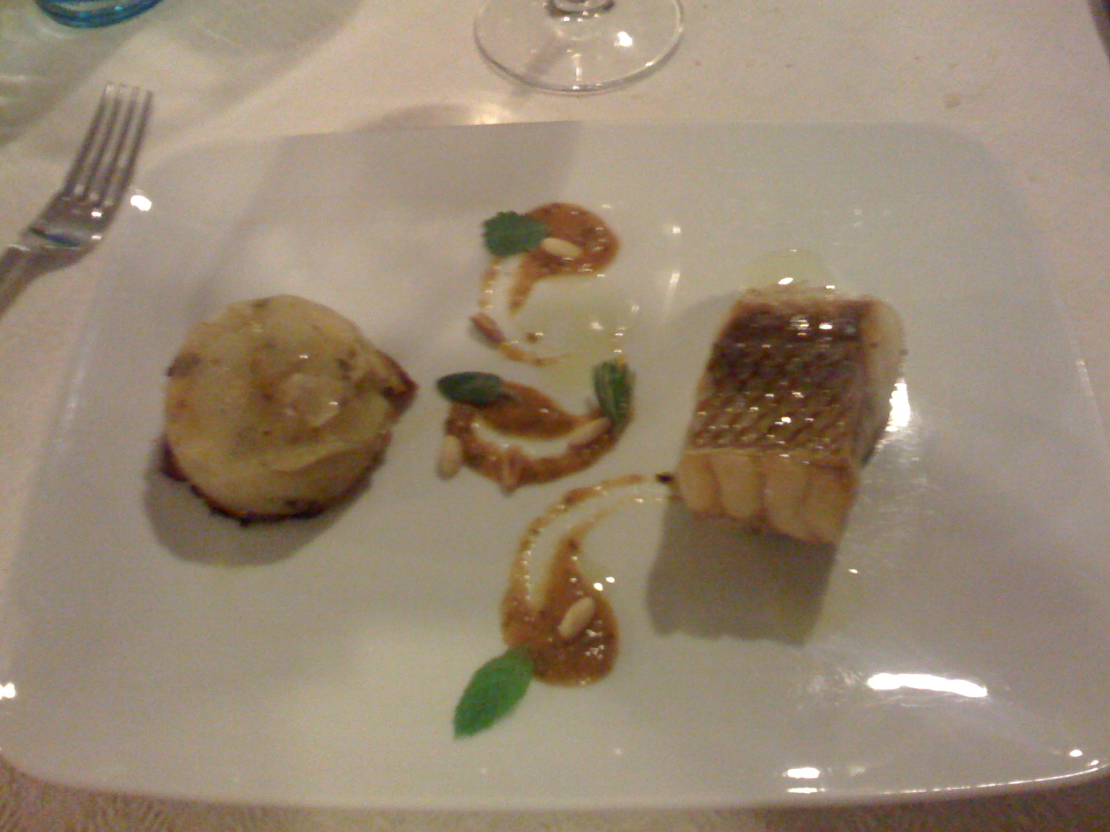 Delle successive due portate null’altro ricordo ormai se non che il mio era un trancio di dentice con patata e che quello di Alessia, invece, un timballo di triglia. Ma come diavolo fanno certi a scrivere i nomi esatti dei piatti?! Okkei, ripeto, le foto sono impresentabili ma questo passa il convento…