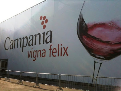 Vado con ordine. Premesso che mi ero auto-imposto di stare alla larga dal padiglione Campania onde evitare di trascorrere lì buona parte del mio tempo, ho fatto un salto nella Campania Vigna Felix (nella foto, tratta da internet) non appena arrivato, solo per fare qualche saluto.