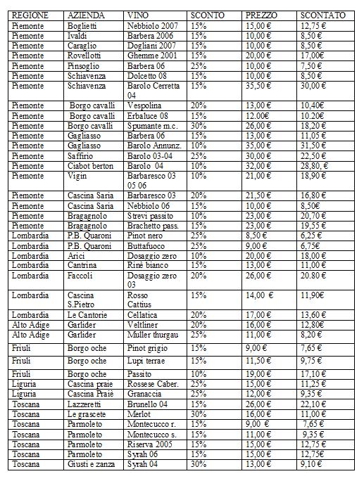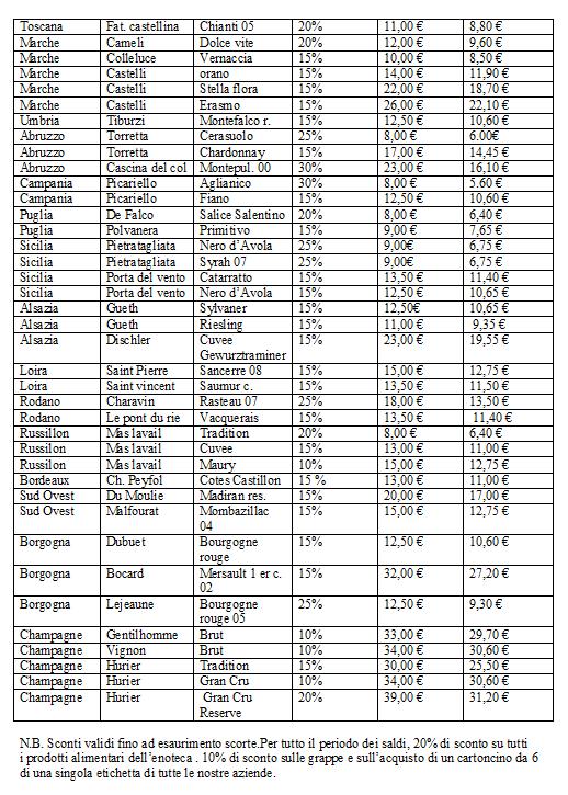 Nella foto sopra, tutti i vini “in saldo” (disponibili fino ad esaurimento scorte).